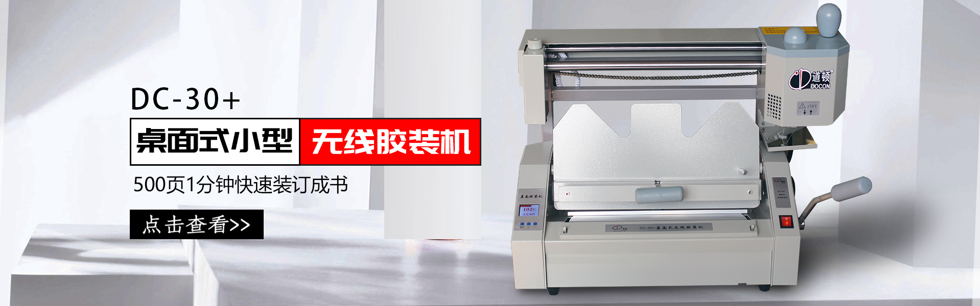 桌面式膠裝機、柜式膠裝機、手動膠裝機、全自動膠裝機、pur膠裝機,多個系列,多個型號,廣泛適用于圖文店、文印中心、印刷廠等行業(yè)和單位,用來裝訂制作標書、書籍等,效率高,成型書本規(guī)整美觀。